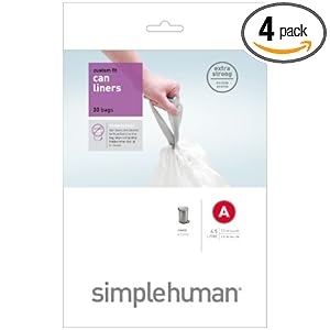 The simplehuman Custom Fit Trash Can Liner A, 4.5 Liters / 1.2 Gallons, 30-Count (Pack of 4) Description