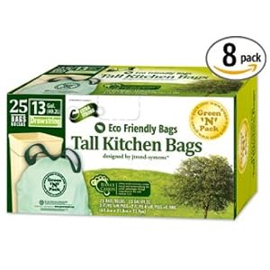 Promotion for Green N Pack Eco Friendly 13 Gallon Drawstring Bag, Tall Kitchen Trash Bags, 25-Count (Pack of 8)