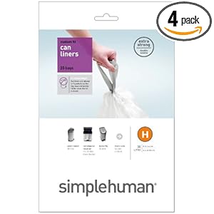 The simplehuman Custom Fit Trash Can Liner H, 30 Liters / 8 Gallons, 20-Count (Pack of 4) is model no. B001H9NCMG, for .96 (It’s the first option.)Your can droped it to . with smart shopping of "simplehuman Custom Fit Trash Can Liner H, 30 Liters / 8 Gallons, 20-Count (Pack of 4) ", Best Price simplehuman Custom Fit Trash Can Liner H, 30 Liters / 8 Gallons, 20-Count (Pack of 4) ORDER NOW GREAT PRICE!.